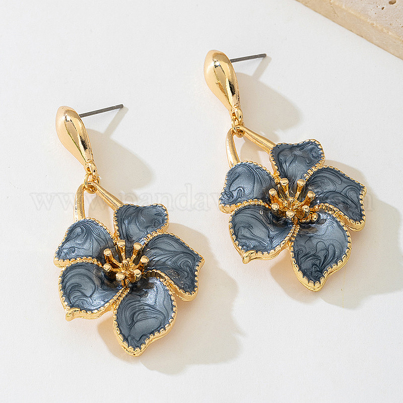 Серьги-гвоздики из цветочного сплава и эмали, золотые