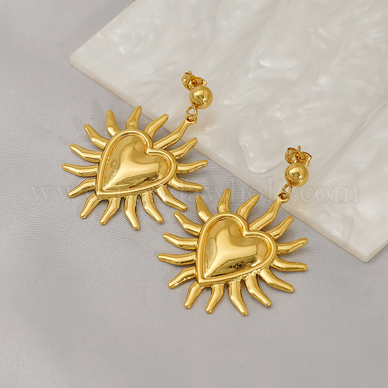 Солнце с сердцем 304 серьги-гвоздики из нержавеющей стали