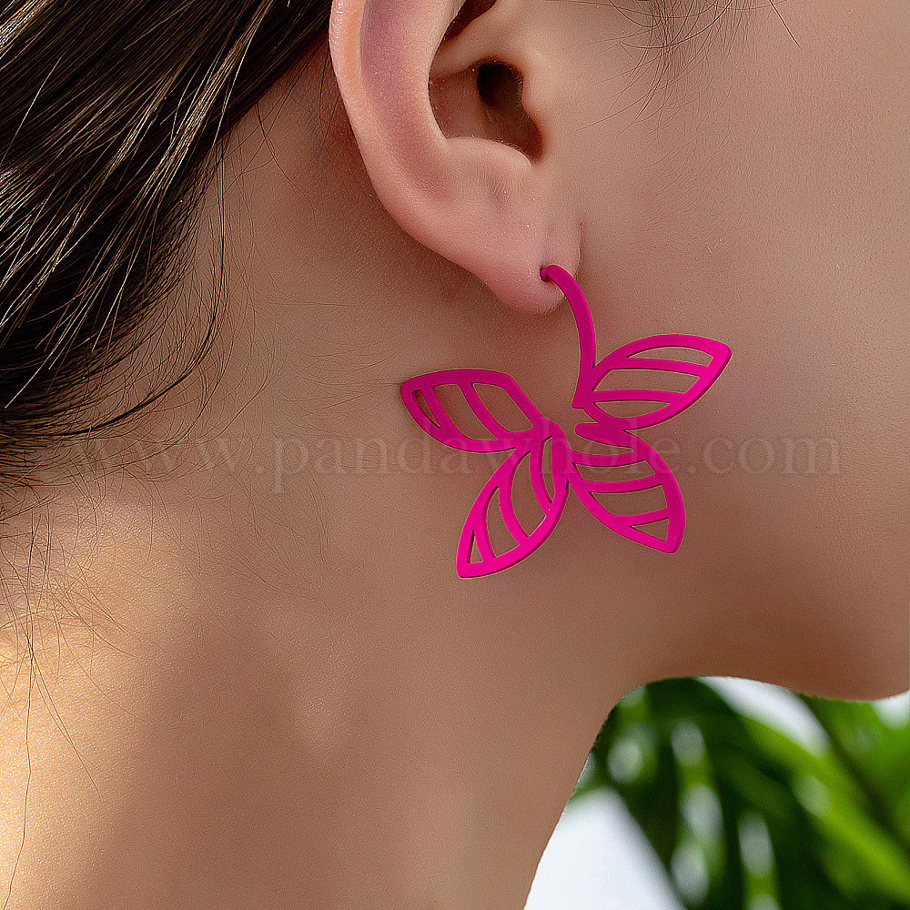 • Фуксиновый Серьги сплава, цветок, красно-фиолетовые, 48x43 мм