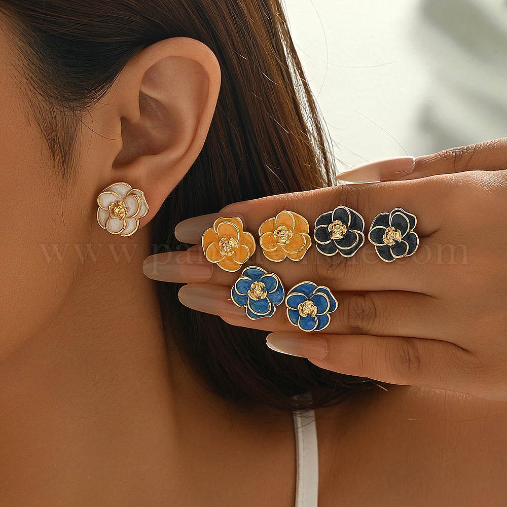 • Синий Серьги-гвоздики из латуни с цветком, реальный 18 k позолоченный, синие, 16x16 мм