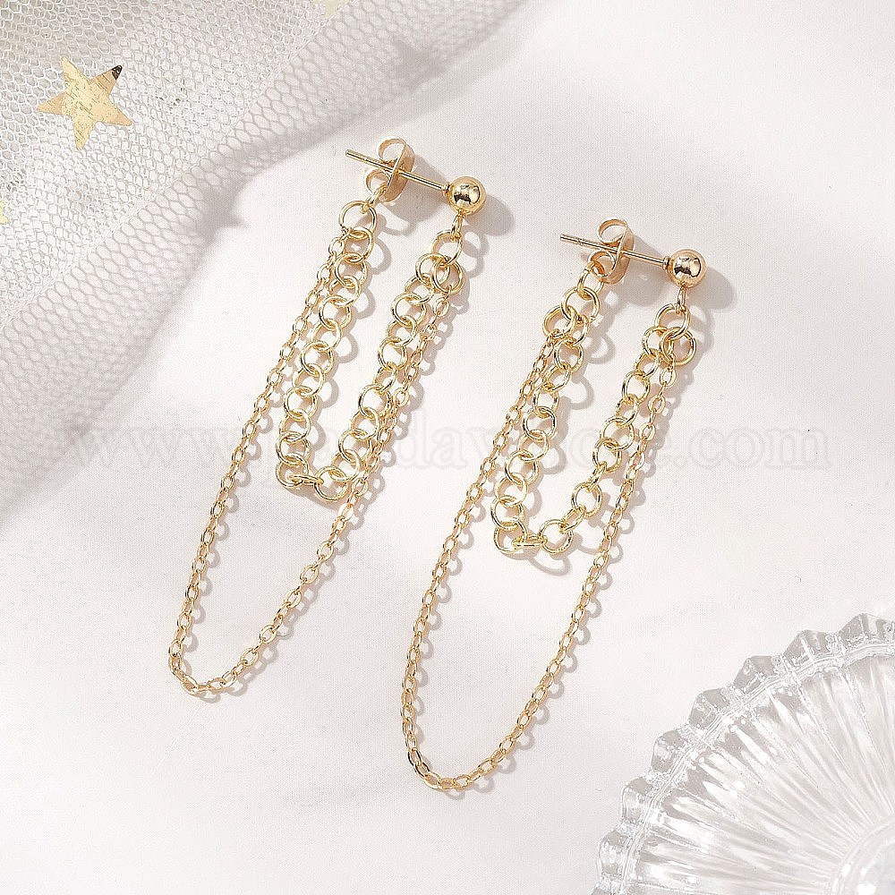 • Золотой Серьги-гвоздики из латуни и нержавеющей стали с кисточками, подвеска-цепочка с кабелем, золотые, 304 мм