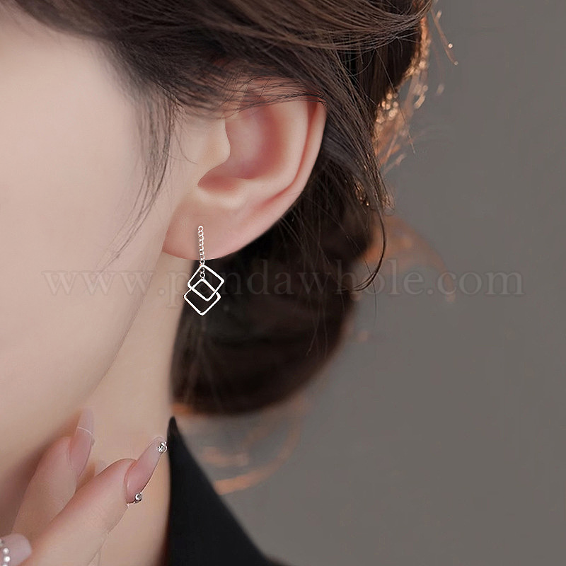 • Золотой Латунная ушная нить, ромб, золотые, 25 мм