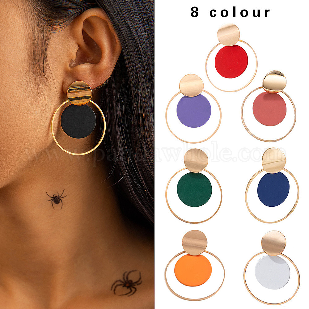 Литые эмаль болтаться серьги стержня, с акриловой, золотые