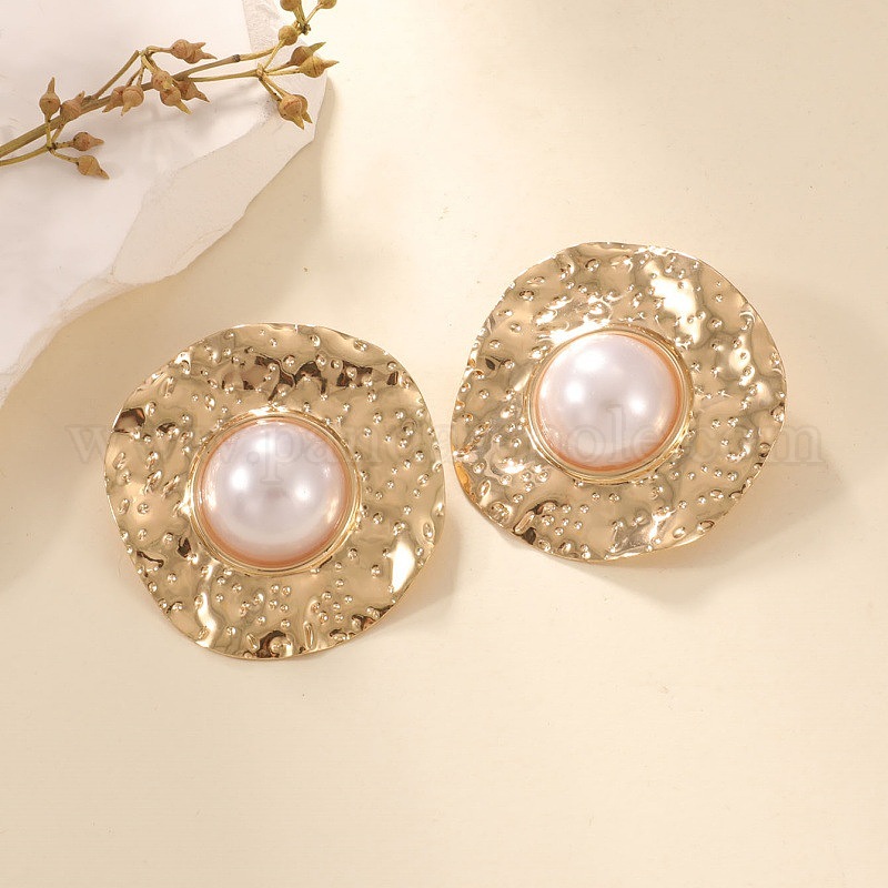 Серьги-гвоздики из железа и пластика с жемчугом, плоско-круглые
