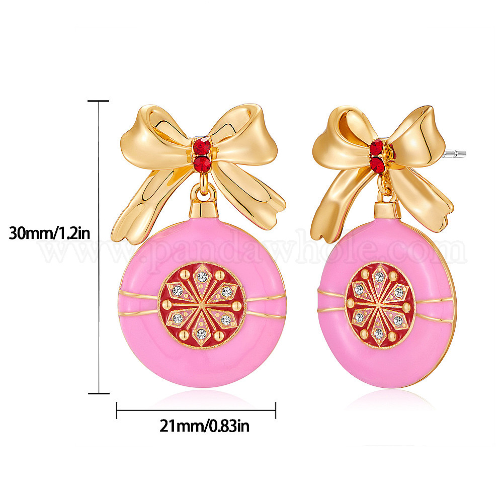 Литые эмаль болтаться серьги стержня, со стразами, плоские круглые с бантом (039GAF)