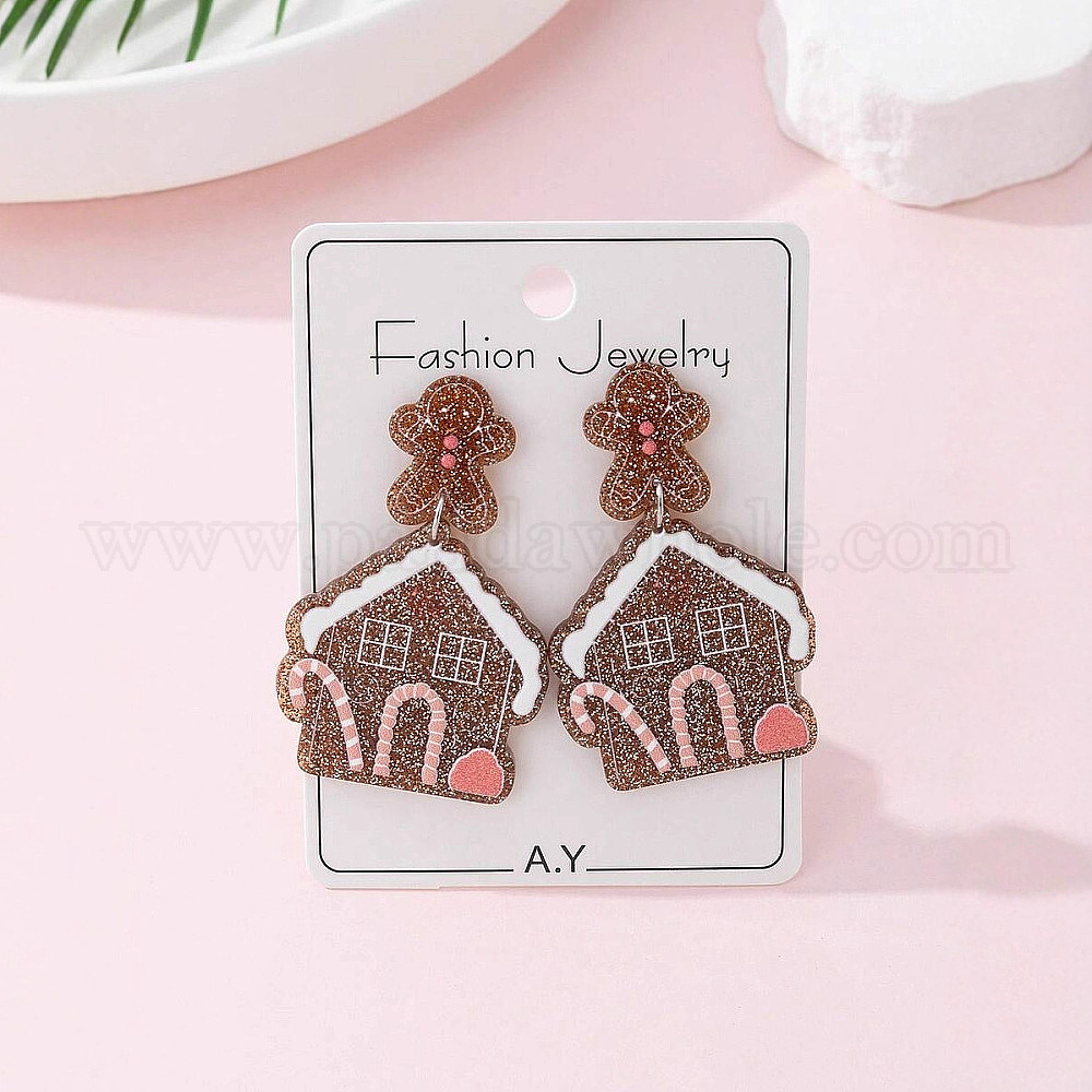 Рождественские акриловые серьги-гвоздики с блестками в виде домика для женщин