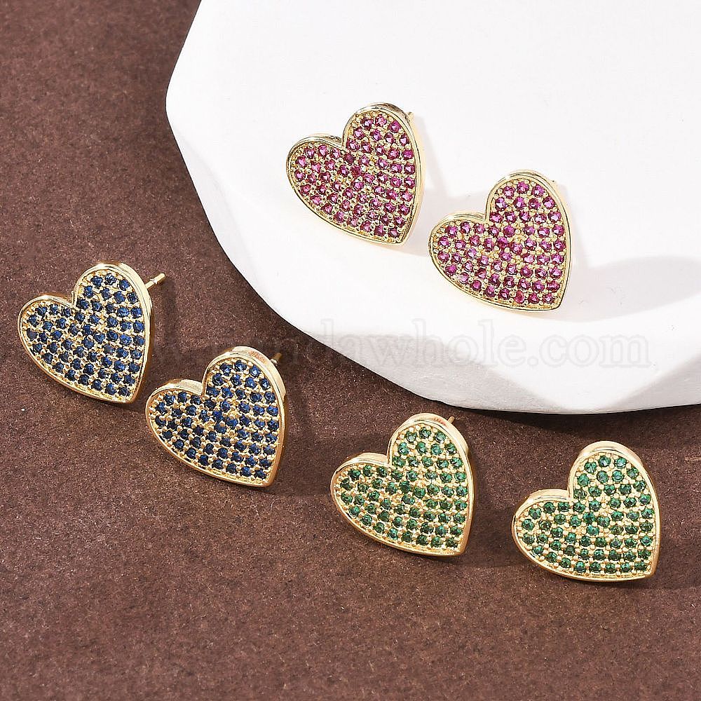 Сердце из латуни микро проложить кубического циркония серьги стержня, долговечный, стойки покрытие, без свинца и без кадмия, реальный 18 k позолоченный