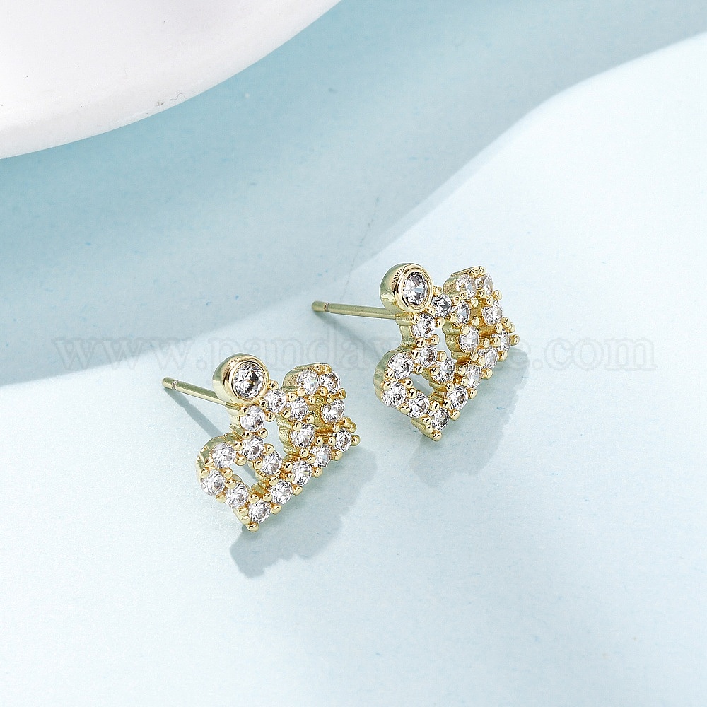 Серьги-гвоздики из латуни с микропаве из прозрачных кубических цирконий, долговечный, стойки покрытие, без свинца и без кадмия