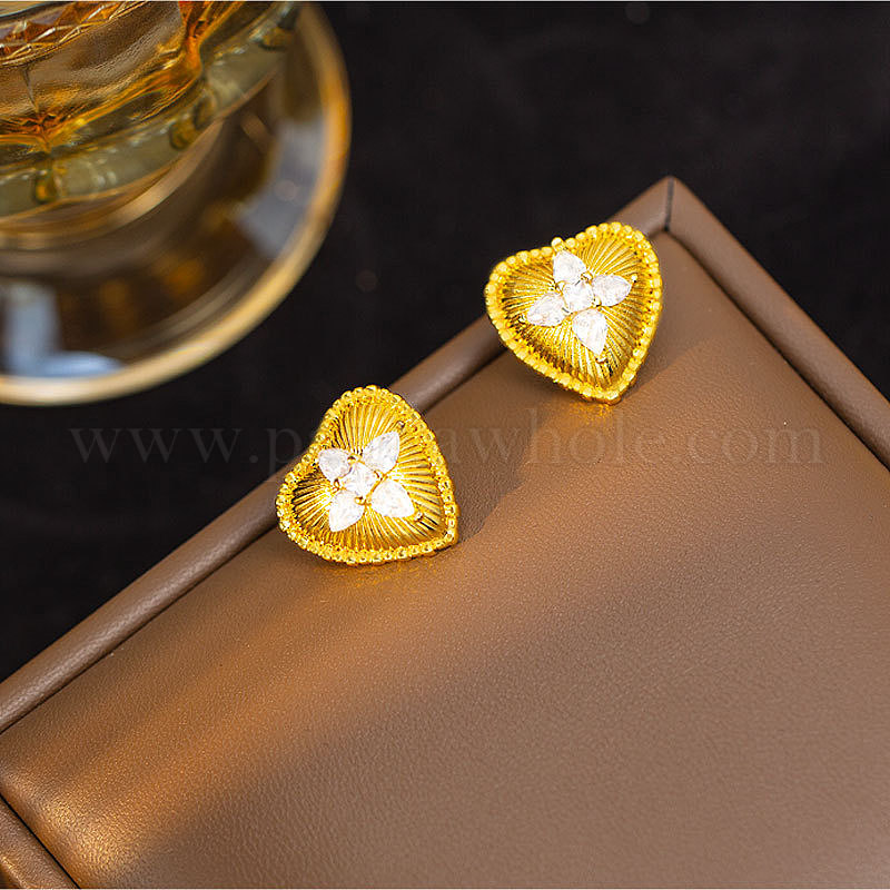 Серьги-гвоздики из латуни с микро-паве и прозрачным фианитом в форме сердца
