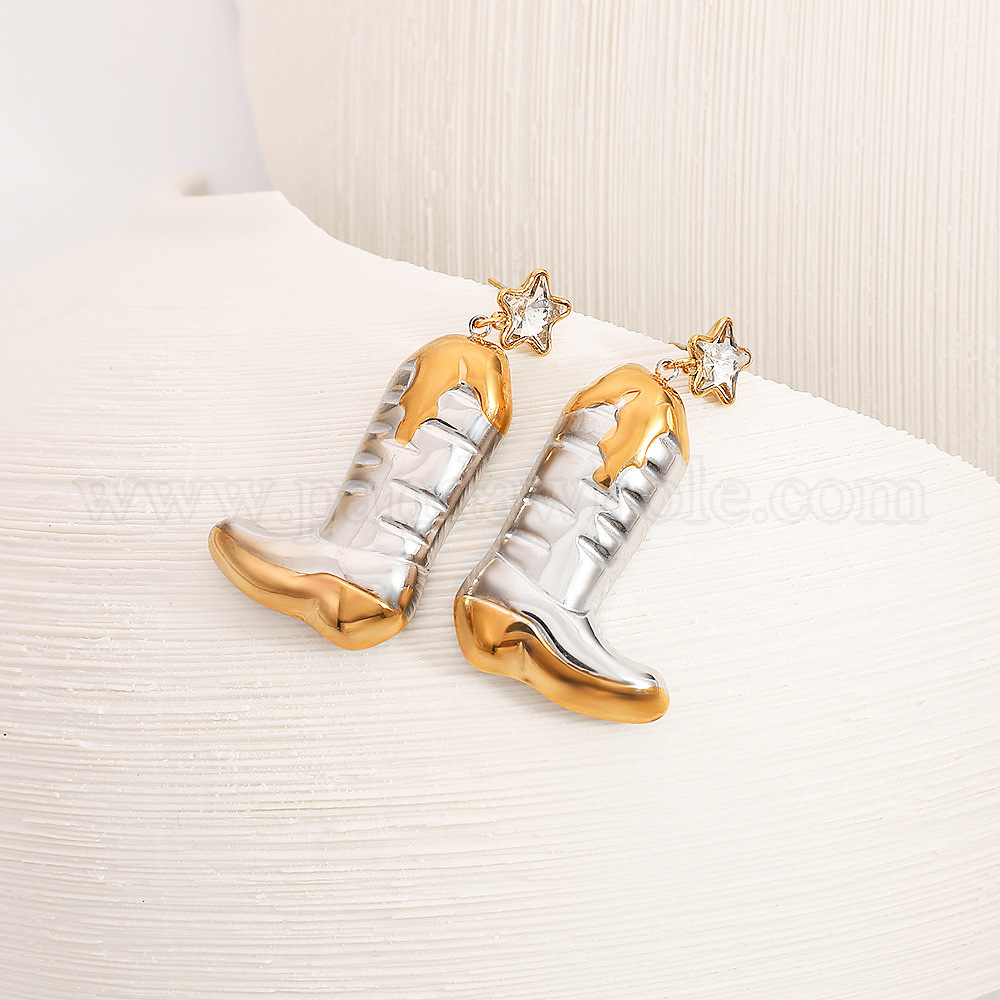 • Золотой & Цвет Нержавеющей Стали Двухцветные ботинки 304 серьги-гвоздики из нержавеющей стали, со стразами, золотые и нержавеющая сталь цвет, 48x24 мм