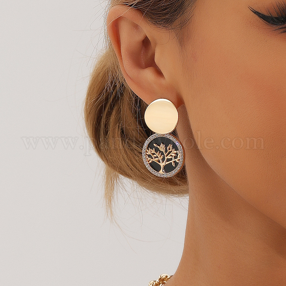 Серьги-гвоздики из сплава и хрустальных стразов, с акриловой, плоские круглые с дерева жизни картины