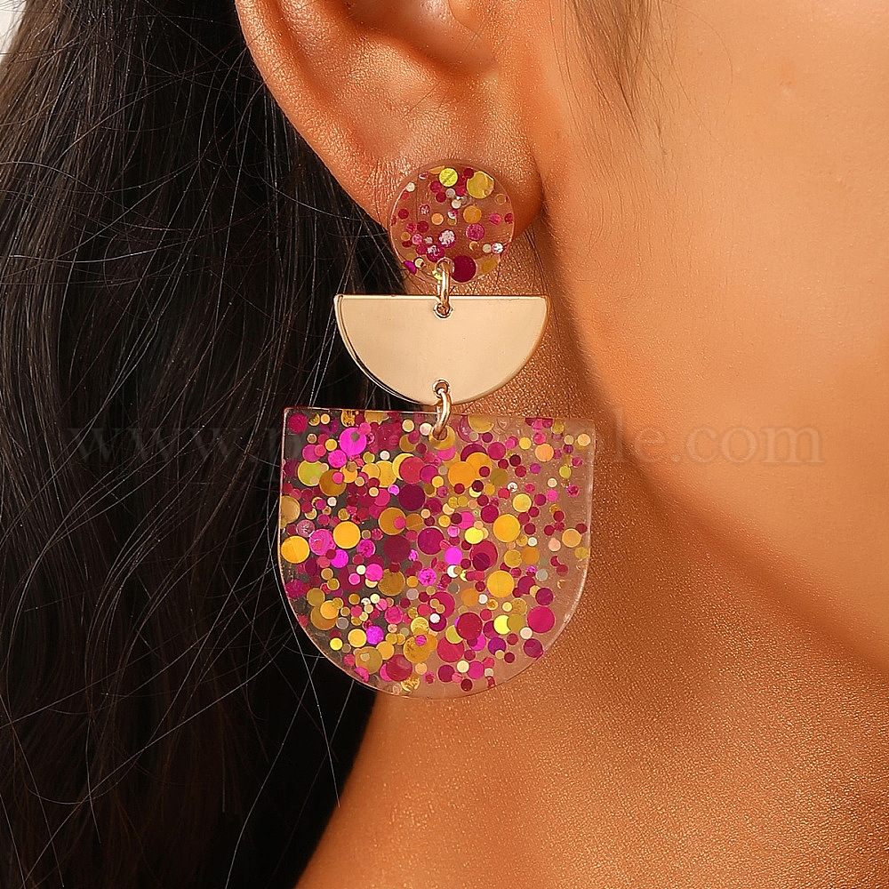 Серьги-гвоздики из сплава и акрила, полукруглая форма с аркой, золотые