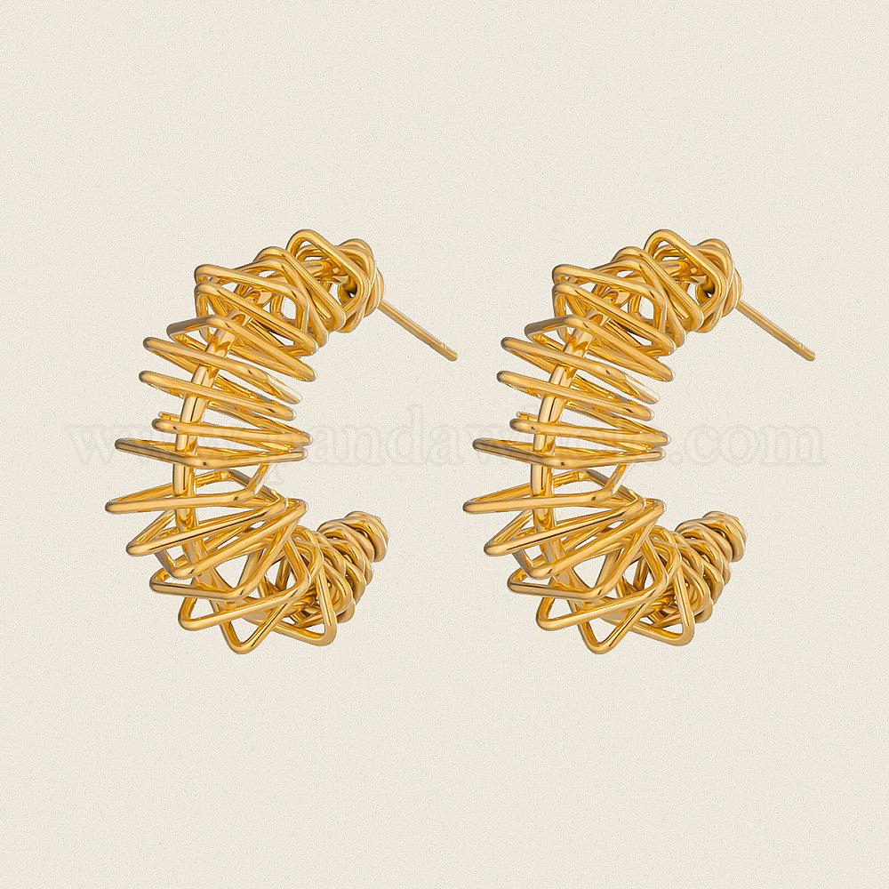Серьги-гвоздики из нержавеющей стали с полой С-образной формой, обмотанной проволокой.