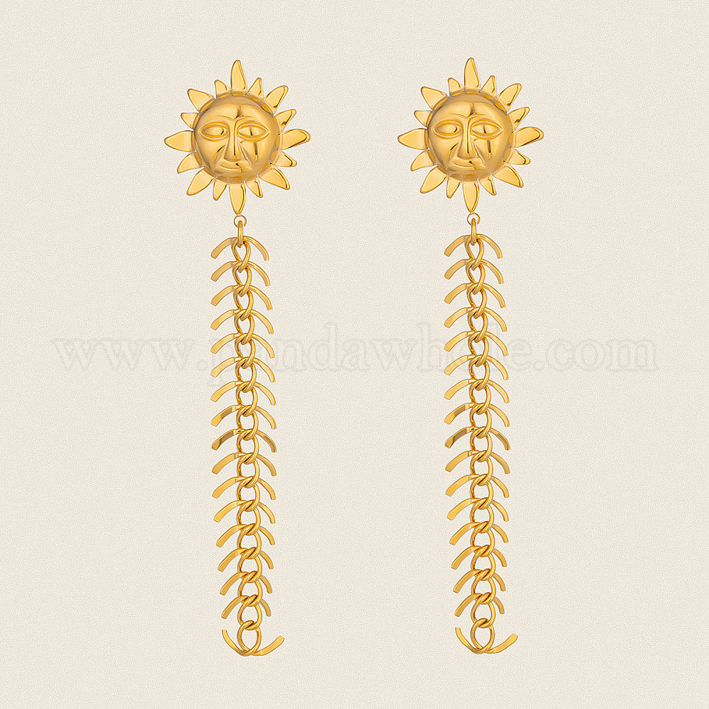 Солнце 304 Серьги-гвоздики из нержавеющей стали с кисточками