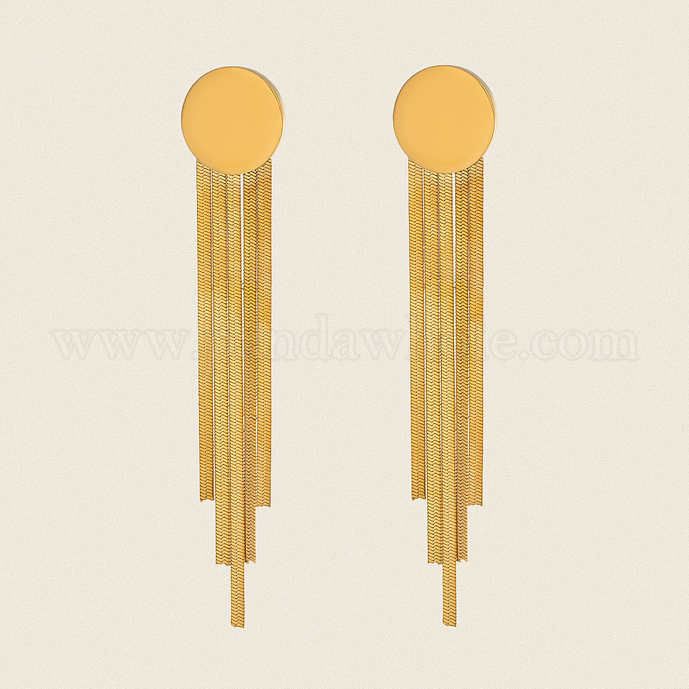 Плоские круглые серьги-гвоздики из нержавеющей стали с кисточкой, цепочка-оберег