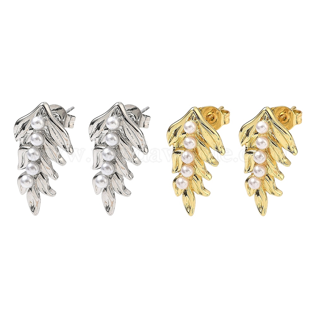 Серьги-гвоздики из латуни в форме листа, с пластмассовой жемчужиной abs, стойки покрытие, без кадмия и без свинца, долговечный