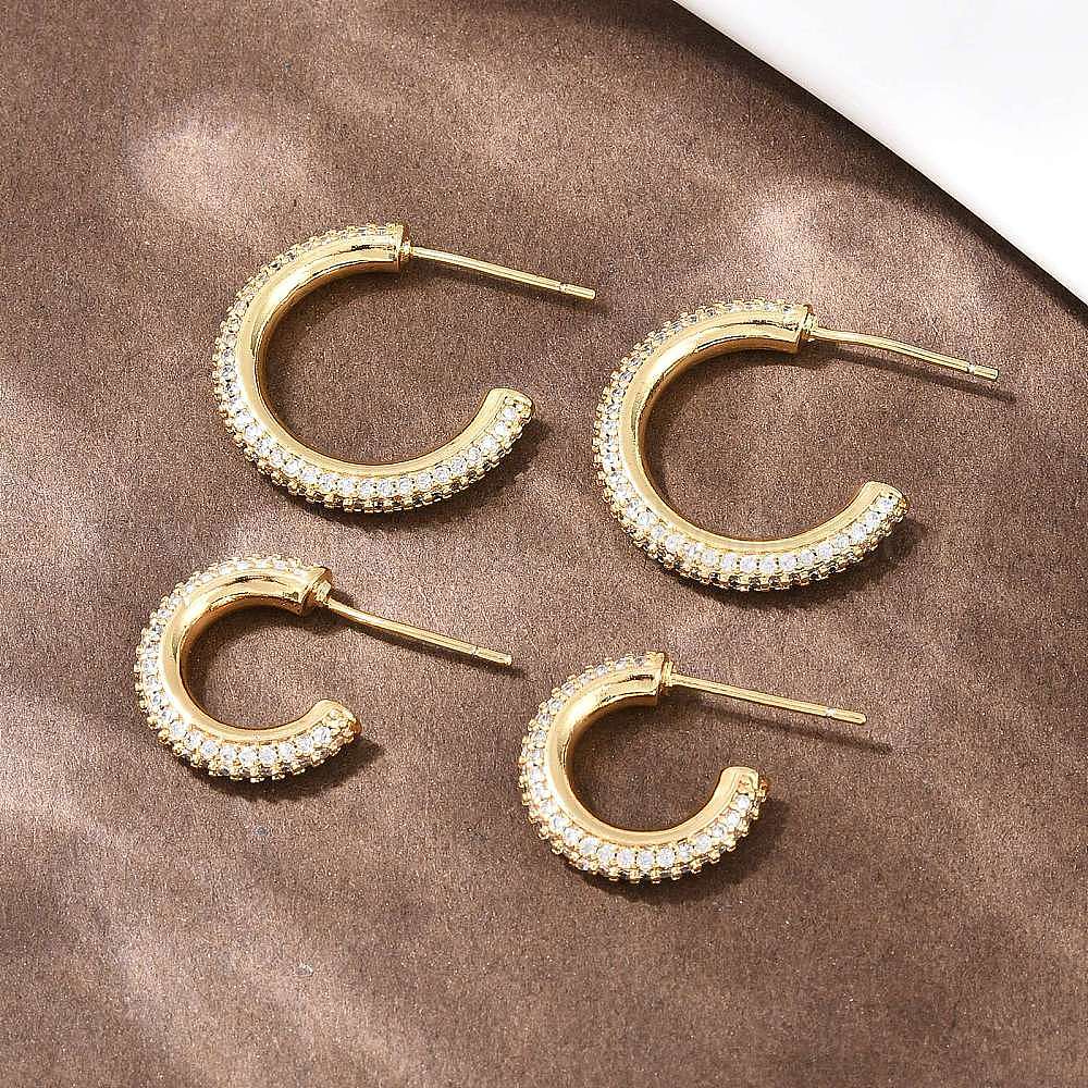 Серьги-гвоздики из латуни в форме буквы С с прозрачным кубическим цирконием, без кадмия и без свинца, долговечный, стойки покрытие