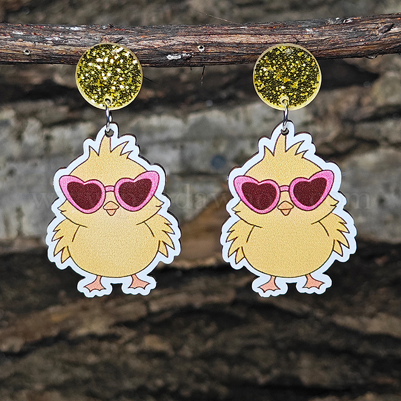 Пасхальные акриловые серьги-подвески, кролик и цыпленок (03A9T8)