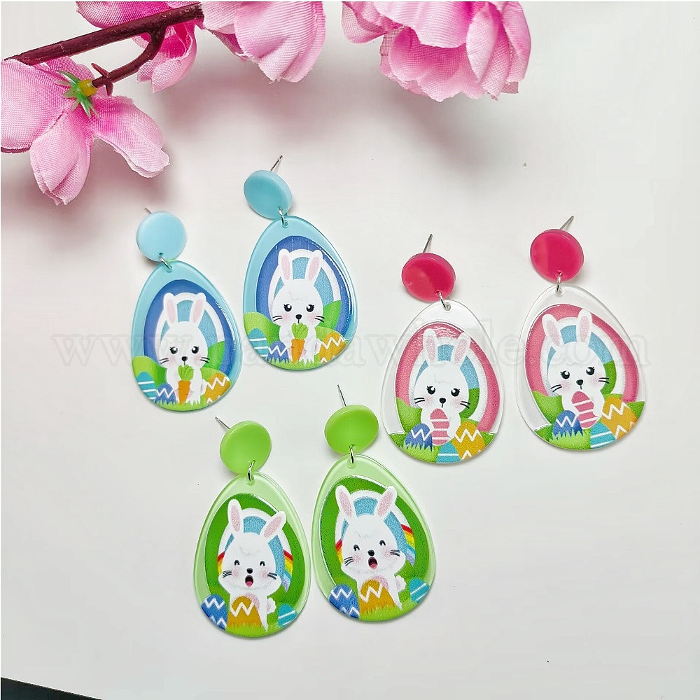Акриловые болтаться серьги стержня, слеза с кроликом, платина