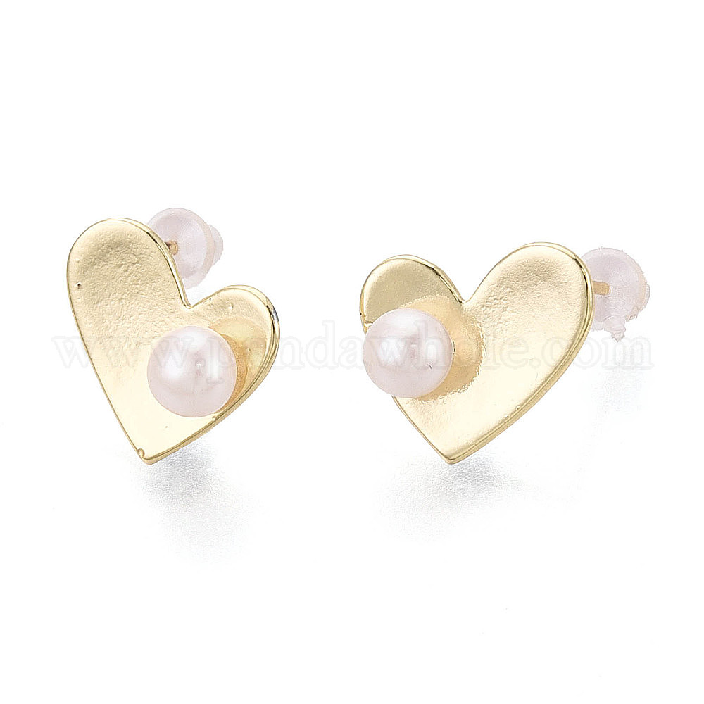 Серьги-гвоздики из латуни и натурального жемчуга, сердце