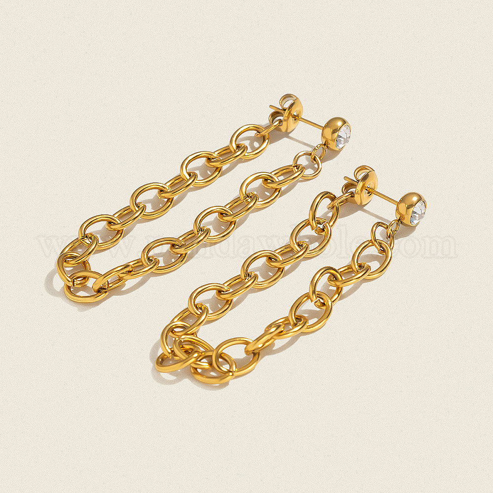 304 Серьги-гвоздики с цепочкой из нержавеющей стали и кисточкой, с четким кубического циркония