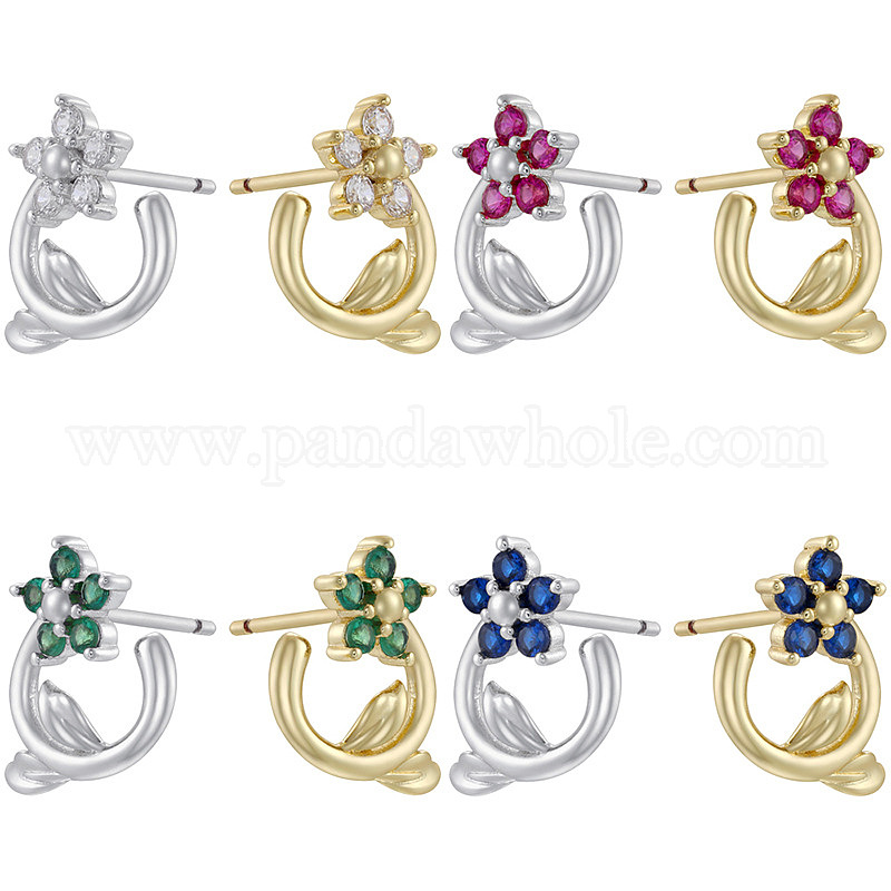 Серьги-гвоздики из латуни с кубическим цирконием ко Дню святого Валентина, цветок (03AFQ7)