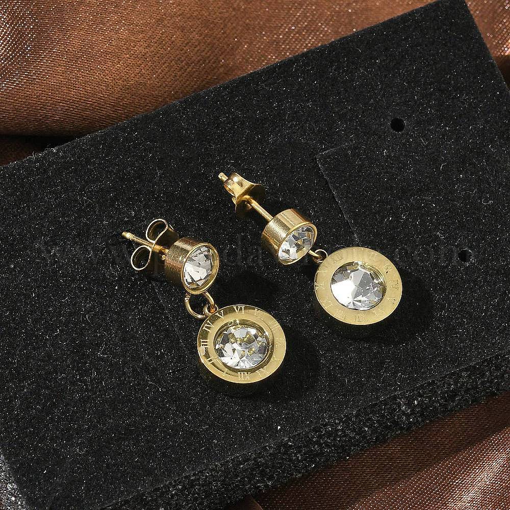 • Золотой 304 из нержавеющей стали болтаться серьги, плоско-круглые, со стразами, золотые, 20.5x10 мм