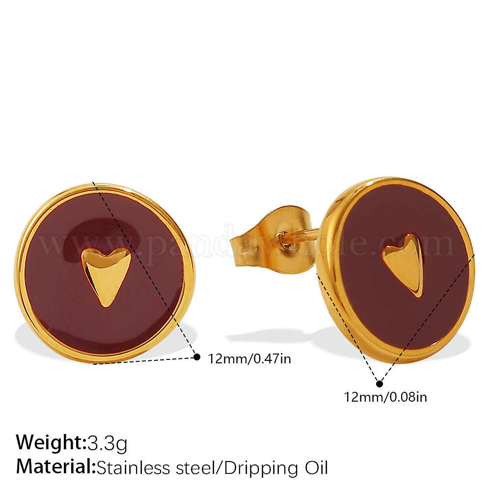 304 Серьги-гвоздики из нержавеющей стали и ракушек, с эмалью, плоско-круглые, реальный 18 k позолоченный