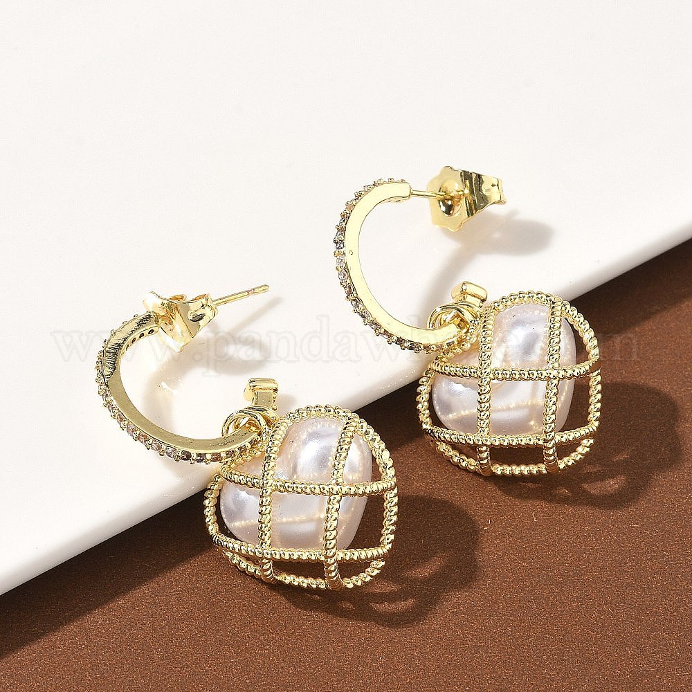 Серьги-гвоздики с цирконом из латуни, с абс пластмассовыми шариками, без кадмия и без свинца, долговечный, стойки покрытие