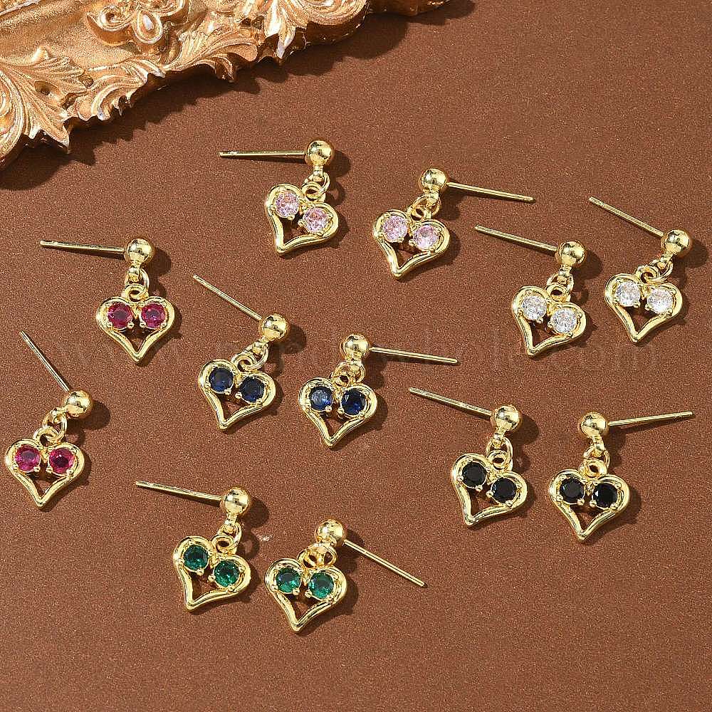 Серьги-гвоздики в форме сердца из латуни с микропаве из кубического циркония ко Дню святого Валентина, без кадмия и без свинца, долговечный, стойки покрытие, реальный 18 k позолоченный