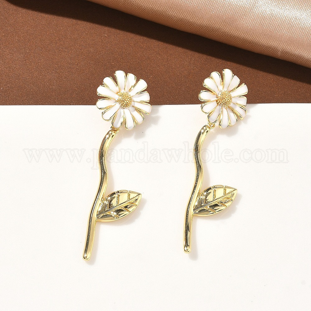 Серьги-гвоздики из латуни с цветком, с эмалью, без кадмия и без свинца, долговечный, стойки покрытие