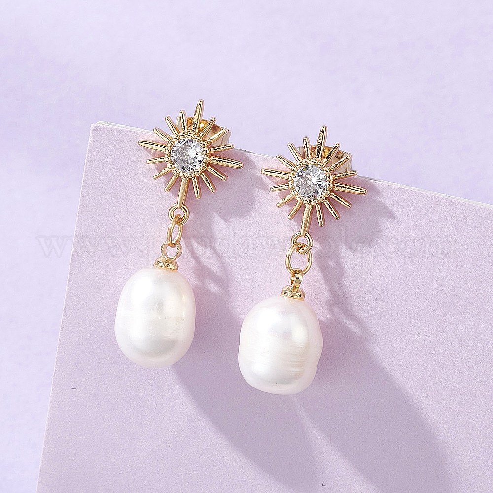 Серьги-гвоздики с подвесками из натурального культивированного пресноводного жемчуга., с фурнитурой для сережек из латуни и нержавеющей стали