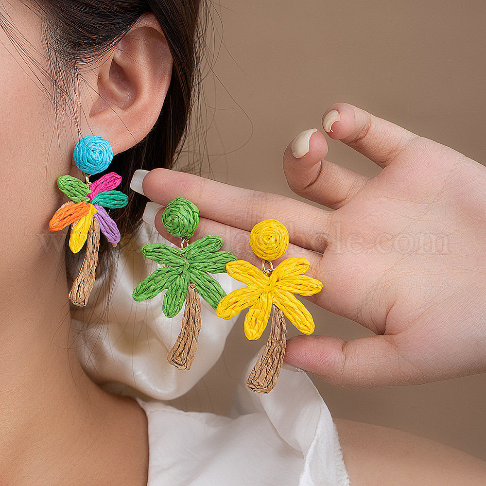 Висячие серьги-гвоздики из рафии, кокосовая пальма (03ATY2)