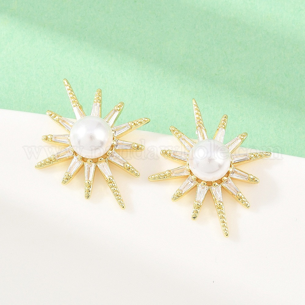 Серьги-гвоздики из латунного микро-паве, с ABS имитации жемчуга, звезда, долговечный, стойки покрытие, без свинца и без кадмия