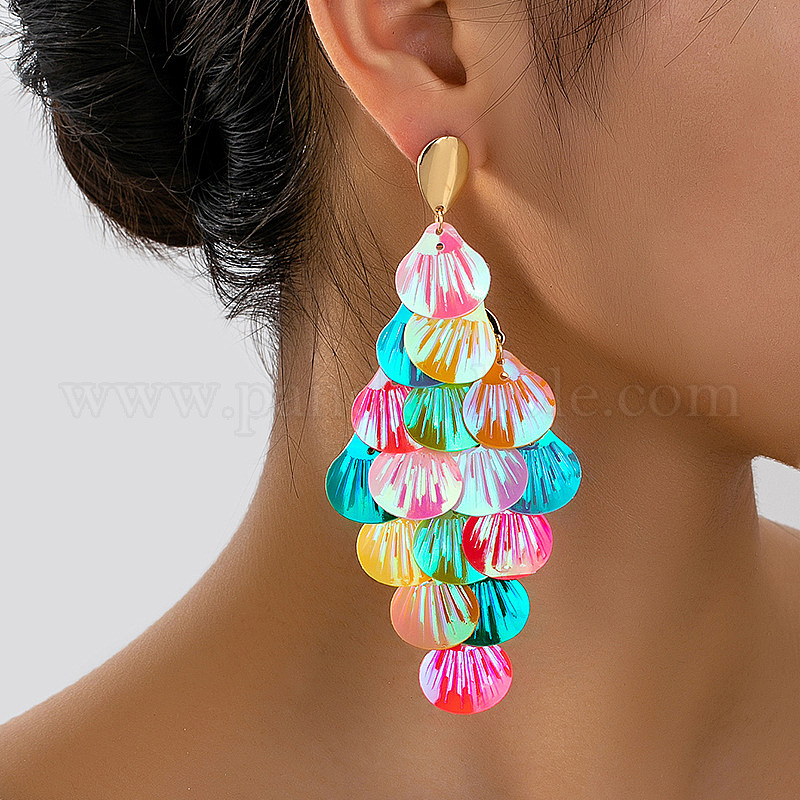 • Разноцветный Подвесные серьги-гвоздики из пластика и сплава, формы раковины, золотые, красочный, 113x50 мм