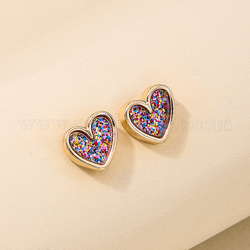 Серьги-гвоздики из сплава и акрила ко Дню святого Валентина, сердце, золотые