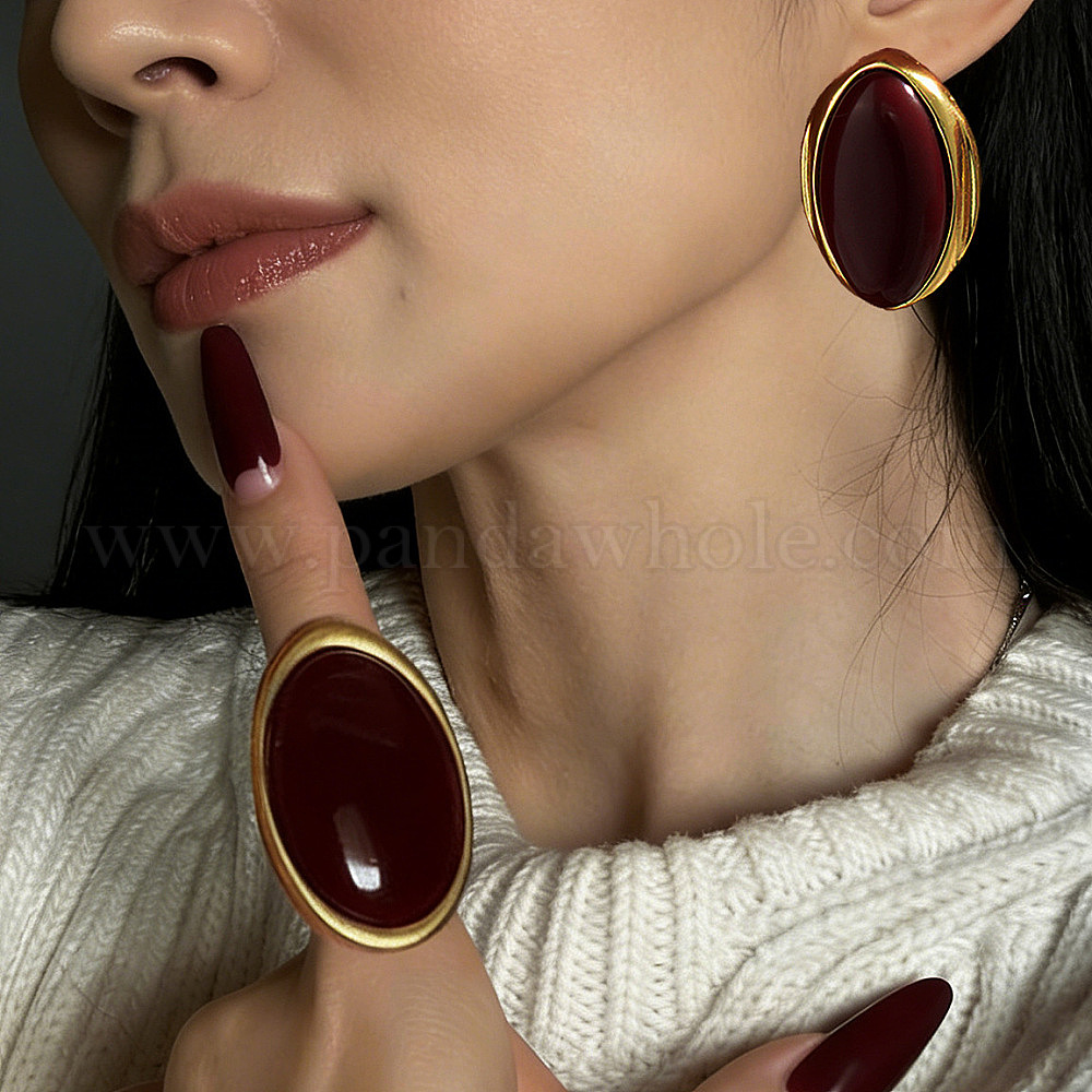 Серьги-гвоздики из сплава и смолы, овальные, золотые