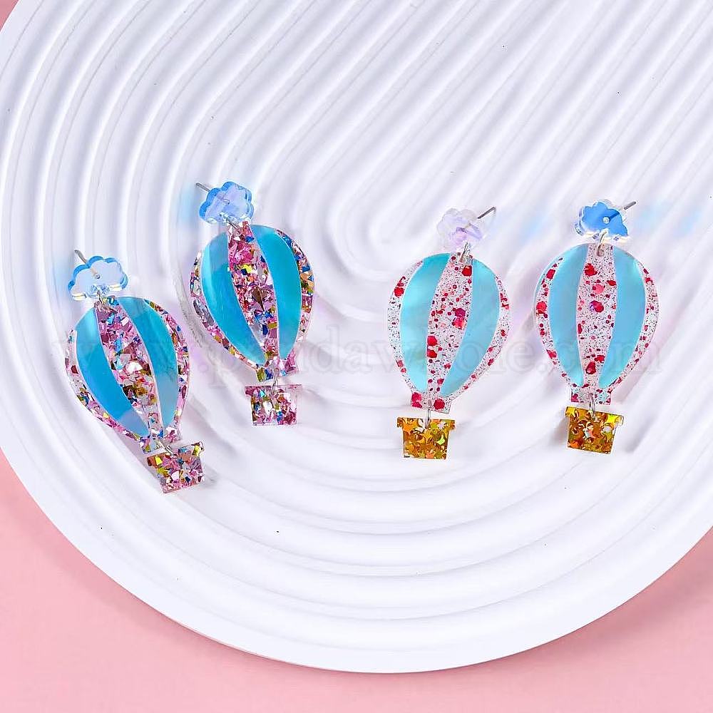 Акриловые серьги-гвоздики в виде воздушного шара, платина