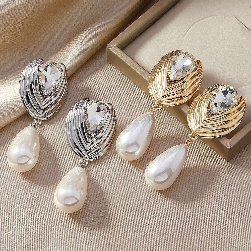 Rhinestone сплава болтаться серьги, с пластиковой жемчужины, слеза