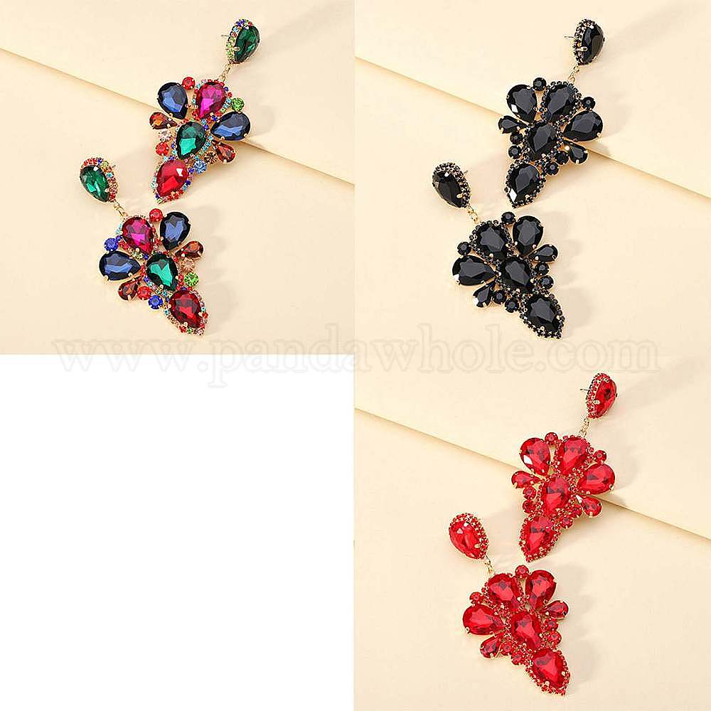 Серьги-гвоздики из сплава со стразами в форме капли, золотые