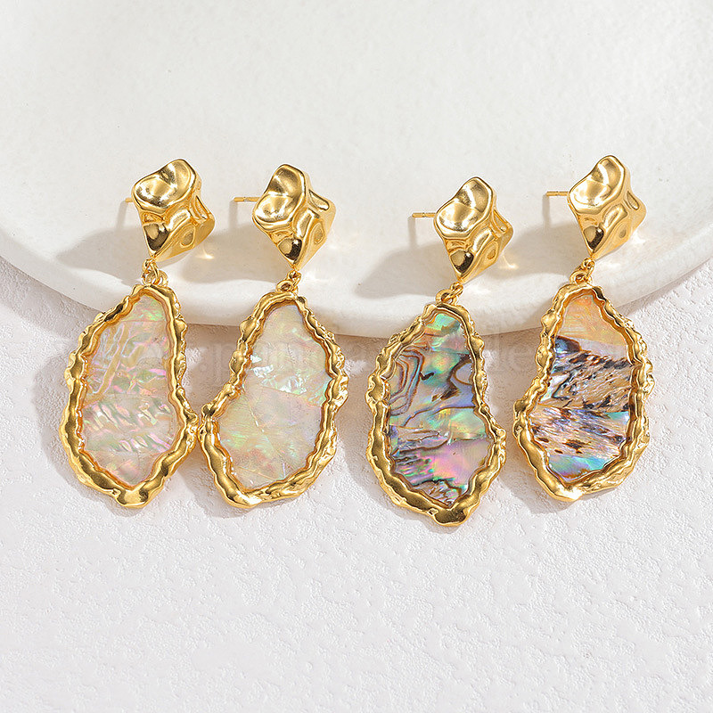 304 Серьги-гвоздики из нержавеющей стали и натуральной ракушки, самородки, золотые