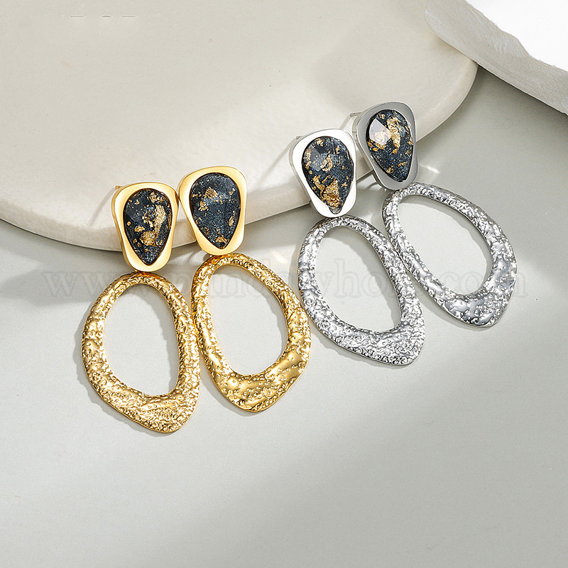 • Золотой 304 Серьги-гвоздики из нержавеющей стали и смолы, неправильный овал, золотые, 57x23 мм
