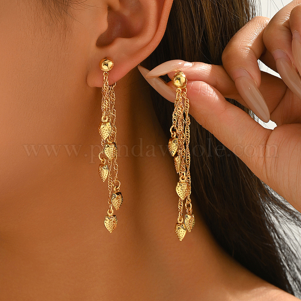 Винтажные латунные серьги-гвоздики с кисточками, реальный 18 k позолоченный