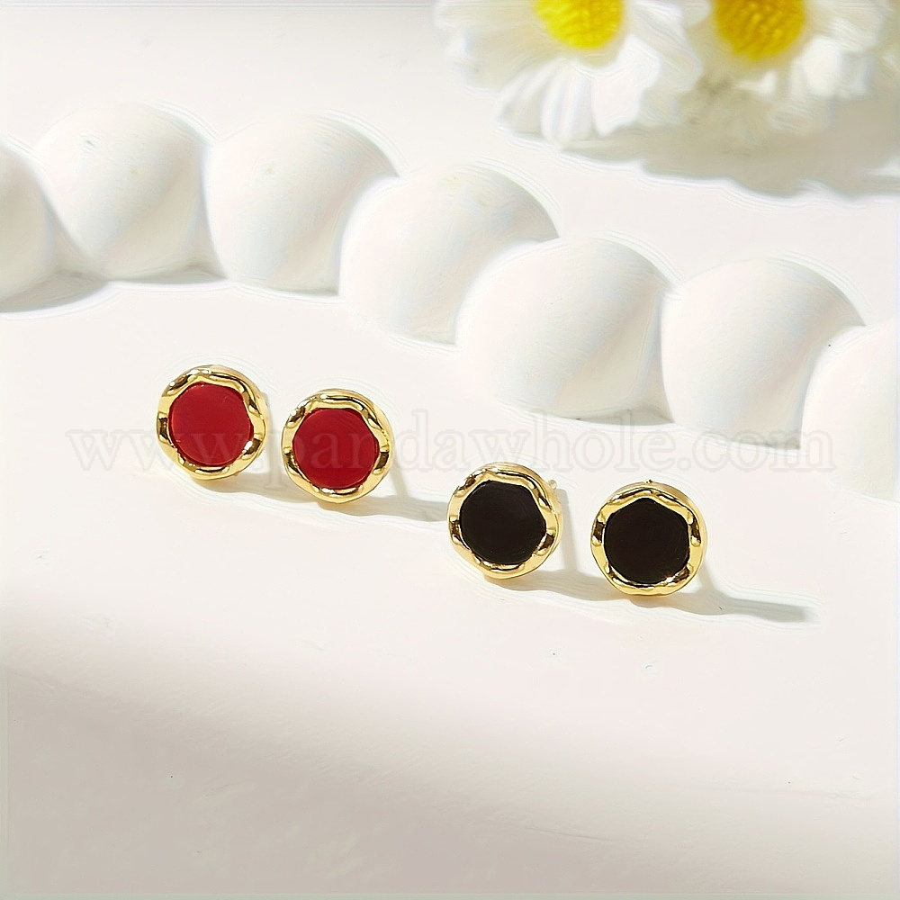 Плоские круглые 201 из нержавеющей стали серьги стержня, золотые