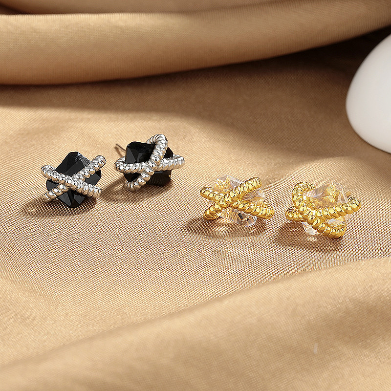 Латунь кубического циркония серьги стержня, Витая веревка с прямоугольником