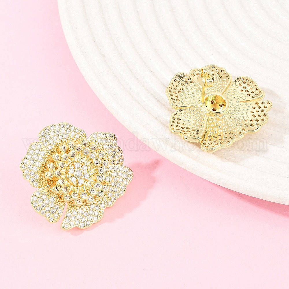 Серьги-гвоздики из латуни с микропаве и прозрачными кубическими циркониями в форме цветка ко Дню святого Валентина, долговечный, без свинца и без кадмия, реальный 18 k позолоченный