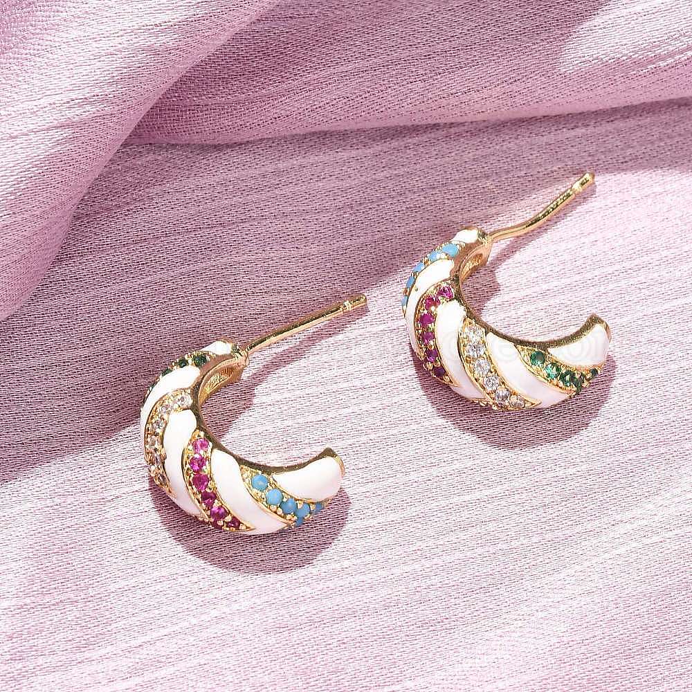 Серьги-гвоздики из латуни в форме буквы С с микропаве из кубического циркония, с эмалью, без кадмия и без свинца, долговечный, стойки покрытие