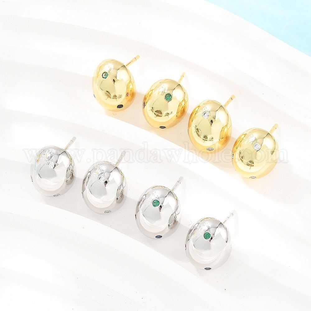 Овальные латунные серьги-гвоздики с микропаве из кубического циркония, без свинца и без кадмия, долговечный, стойки покрытие