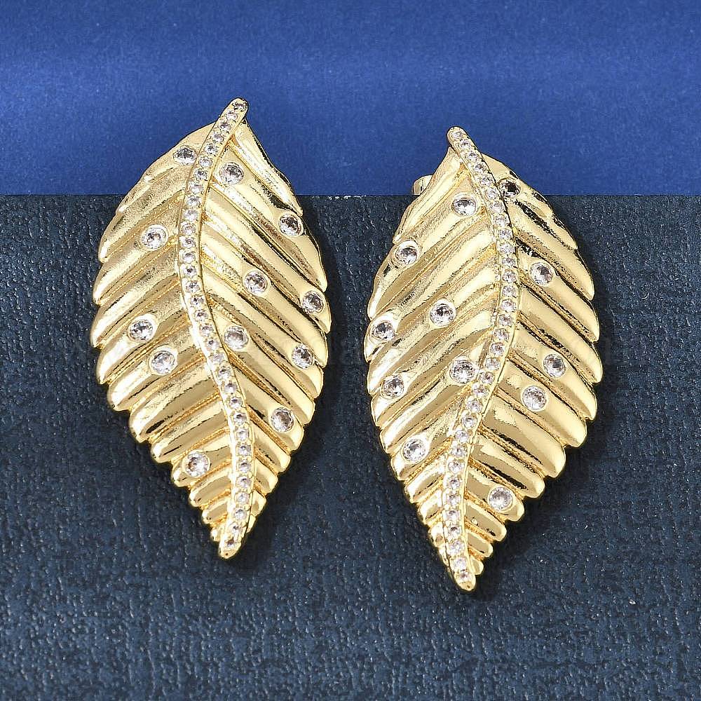 Серьги-гвоздики из латуни в форме листа с прозрачными кубическими циркониями для женщин