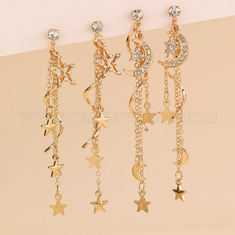 Серьги-гвоздики с кисточками из сплава и страз, золотые